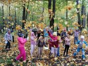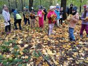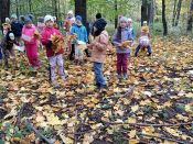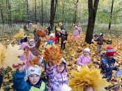 Na vycházce sledovali a zaznamenávali, co viděli kolem sebe, poznávali stromy, listy a plody. Vycházku ukončili "barevným listopádem".
