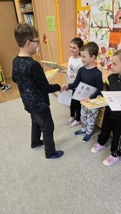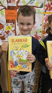Po úspěšném splnění všech úkolů jim žáci pátého ročníku slavnostně předali jejich první Slabikáře. Prvňáčci si zábavné dopoledne plné radosti a objevování naplno užili.