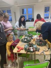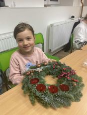 V pondělí 1. prosince jsme společně s maminkami tvořili adventní věnce pod odborným vedením pana Di-Giusta. Věnce se všem velmi povedly a nakonec zbyl i čas na příjemné posezení u kávy a drobného občerstvení.