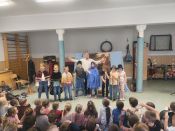Děti byly do jednotlivých rolí vybrány panem Urbánkem, který měl celé představení na starost a sám jej řídil jako Anděl. Atmosféru představení krásně doplnil hudební doprovod. Zazněly tradiční české koledy, zpívané dětmi i učiteli, a o jedinečný zvuk se postarala harmonika, ukulele a dokonce i dudy.