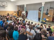 Naši žáci zde pod vedením pana Ivana Urbánka ztvárnili divadelní představení „Slyšte, slyšte aneb co se stalo v Betlémě“, které vyprávělo adventní příběh Andělova zvěstování Panně Marii, putování do Betléma a okamžiků, kdy se pastýři a tři králové přicházejí poklonit Ježíškovi a přinést mu své dary.