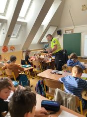 Program byl zaměřen na dopravní výchovu a bezpečné chování dětí v roli chodců i cyklistů. Strážník žákům vysvětlil základní pravidla silničního provozu, připomněli význam dopravních značek a upozornili na nejčastější rizikové situace, se kterými se mohou děti v každodenním provozu setkat. Žáci si také vyzkoušeli řešení modelových situací a zopakovali si, jak správně přecházet vozovku či jezdit na kole. Beseda probíhala ve velmi přátelské atmosféře a děti měly možnost klást otázky a podělit se o vlastní zkušenosti. Program byl pro žáky nejen poučný, ale také velmi zajímavý.