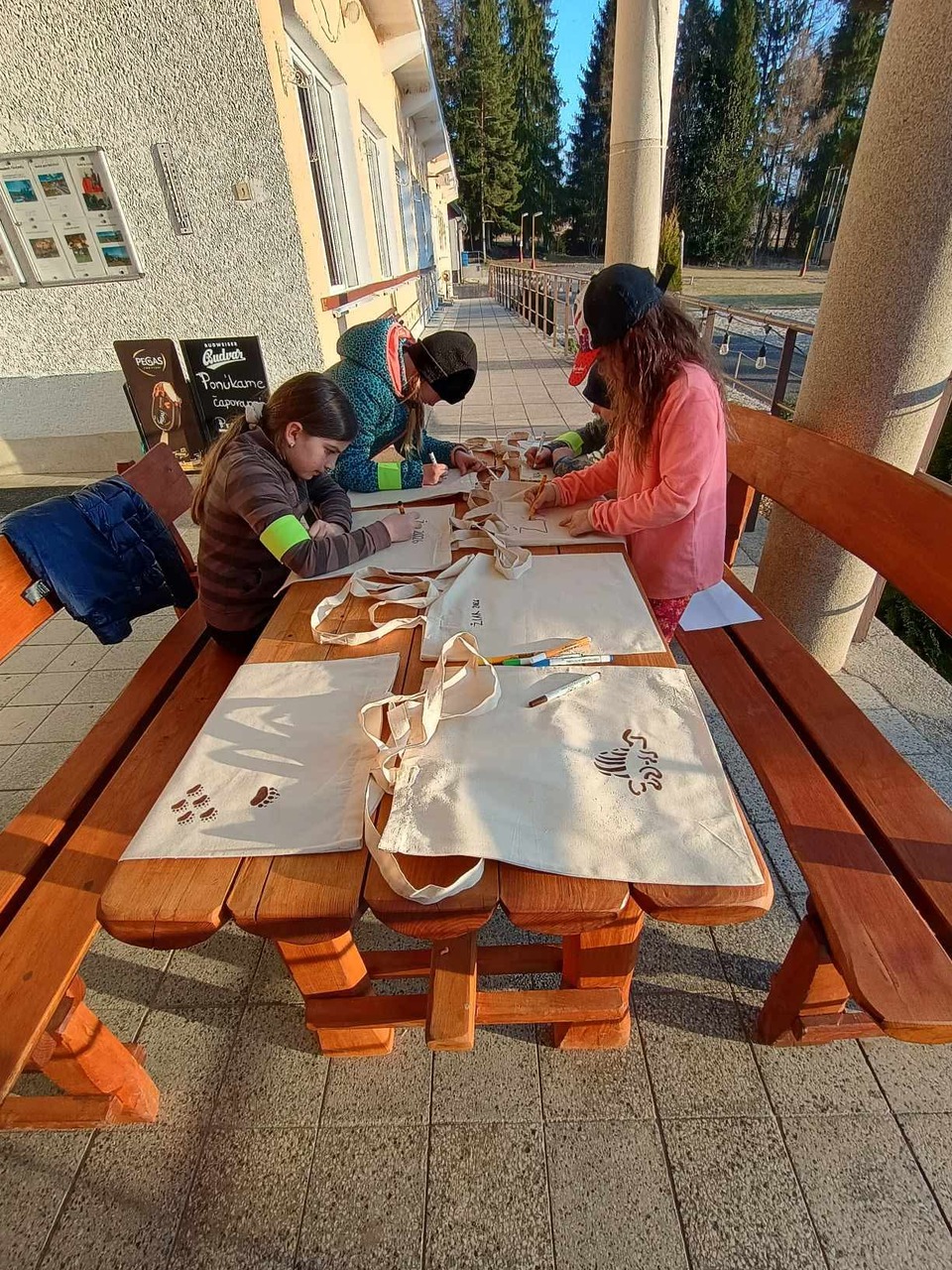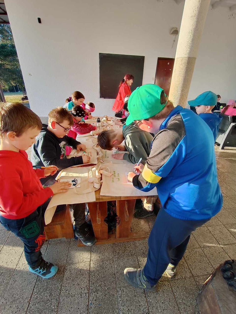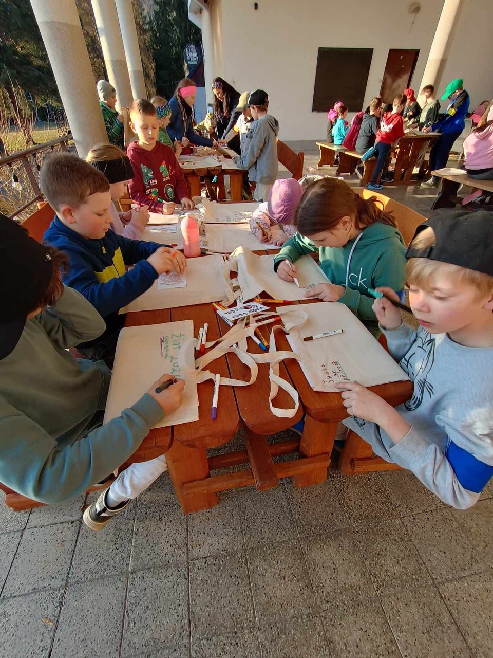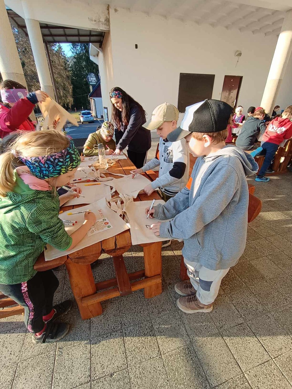 Odpoledne patřilo sportu – děti si vyzkoušely překážkovou dráhu, zahrály si tenis i fotbal. Následovala tvořivá dílna, při které jsme zdobili plátěné tašky. Tato činnost bavila nejen žáky, ale i paní učitelky.