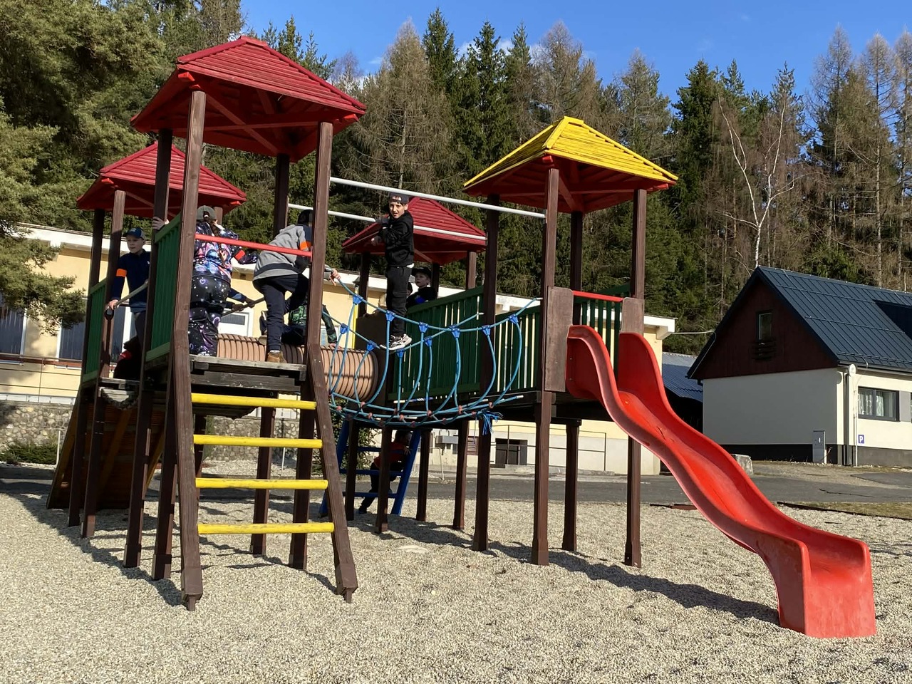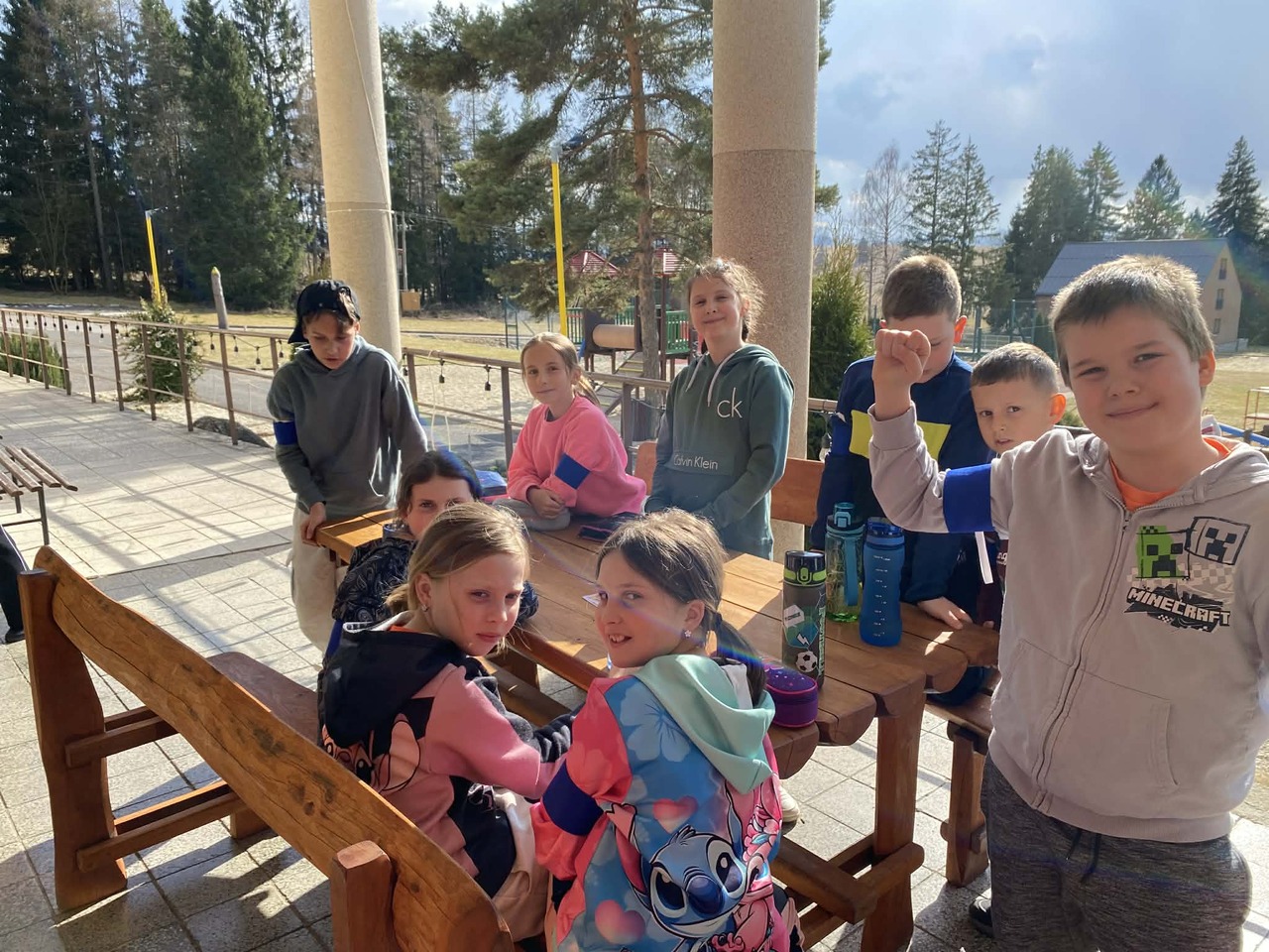 Do Žiaru jsme dorazili v pořádku. Ubytovali jsme se ve třech chatách a děti jsme rozdělili do týmů. Společně jsme prošli pravěkou stezku a večer jsme si povídali o tom, jak se žilo v pravěku. Nechyběla ani soutěž a naučili jsme se naši pravěkou hymnu.