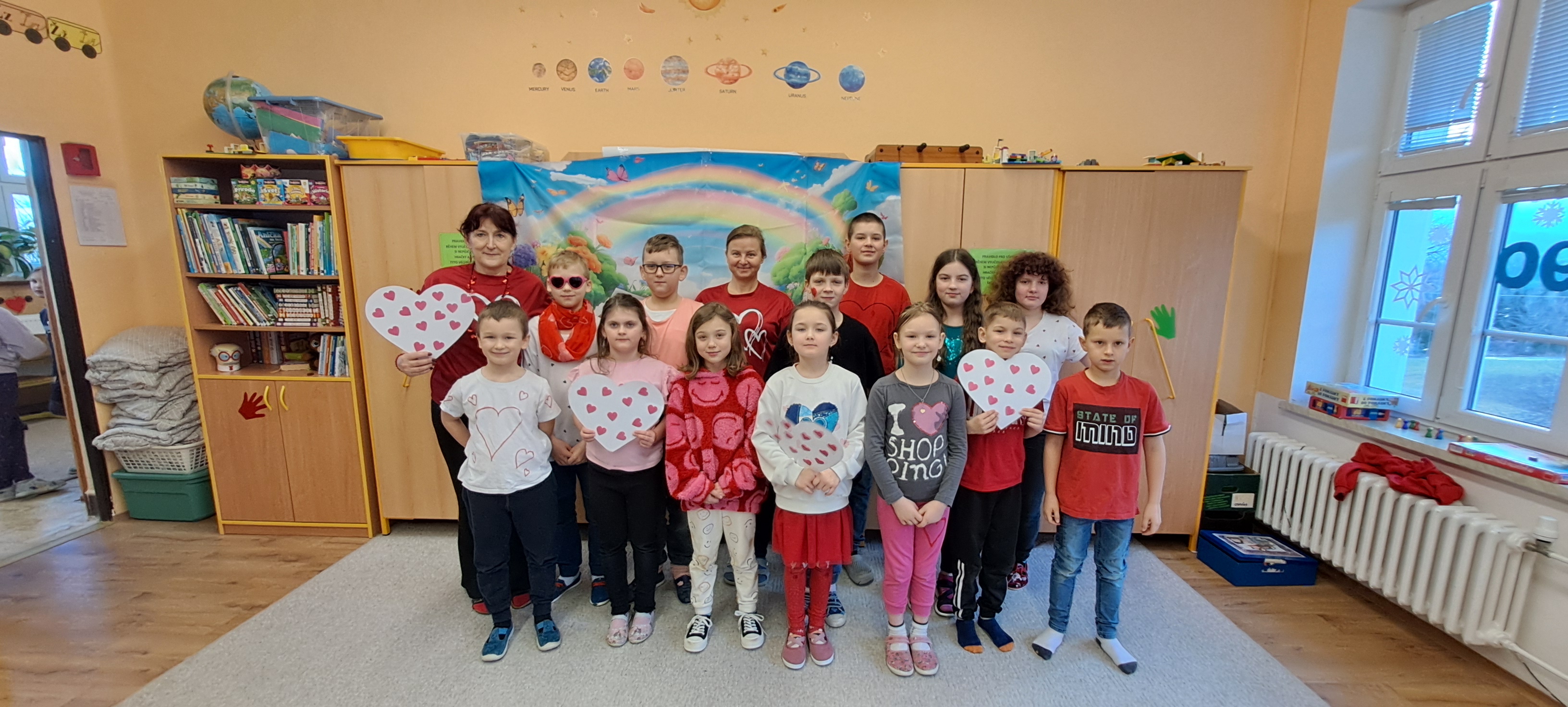 Dne 12. 2. 2026 jsme prožili v naší škole další z tematických dnů. Tento byl srdíčkový. Děti se tématicky oblékly. V průběhu týdne měly možnost napsat nějaký hezký vzkaz svému kamarádovi. Ve čtvrtek se pak srdíčková pošta otevřela a udělala radost mnohým dětem i učitelům. Děti během dne plnily různé úkoly spjaté s tímto dnem. Všem se valentýnská atmosféra ve škole líbila.